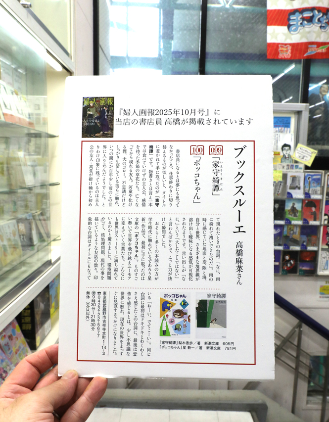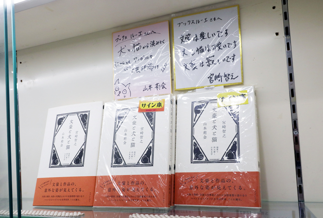 婦人画報10月号での選書作品やルーエスタッフの選書、『文豪と犬と猫』(アプレミディ)の共著者、宮崎智之さん、山本莉会さんによる文豪12人の名作コメントなどずらり。