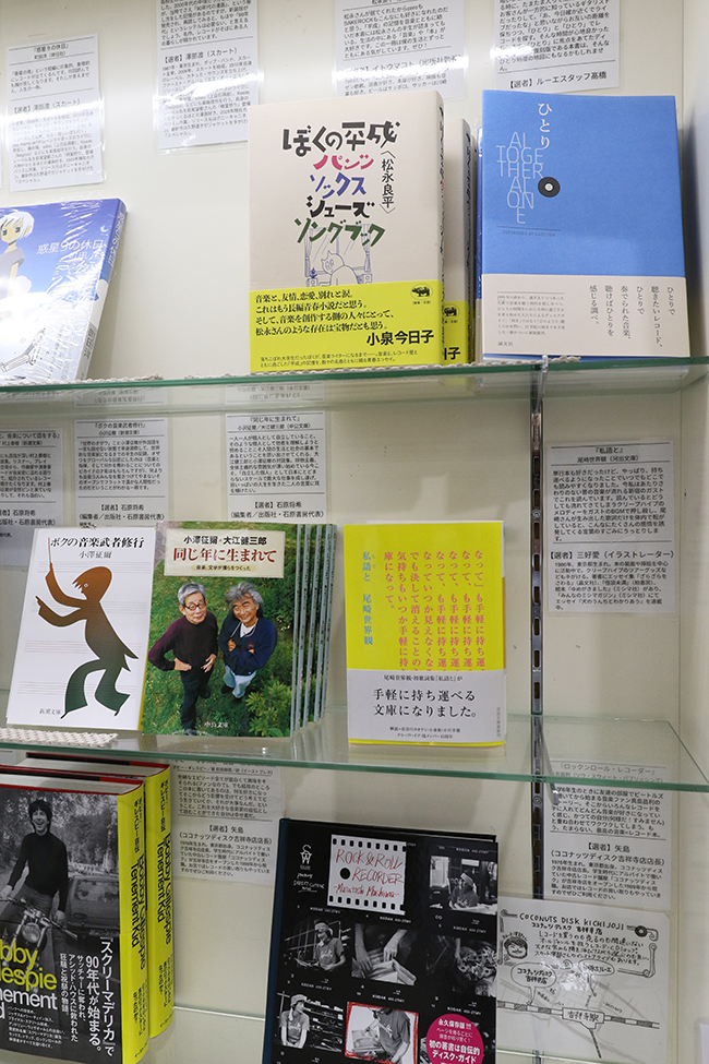 選書コメント掲載のフリー冊子もあり。大橋裕之先生『音楽』Tシャツなども販売中です。