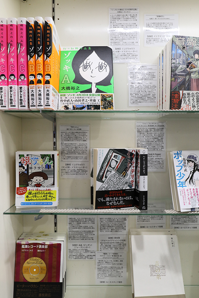 選書コメント掲載のフリー冊子もあり。大橋裕之先生『音楽』Tシャツなども販売中です。
