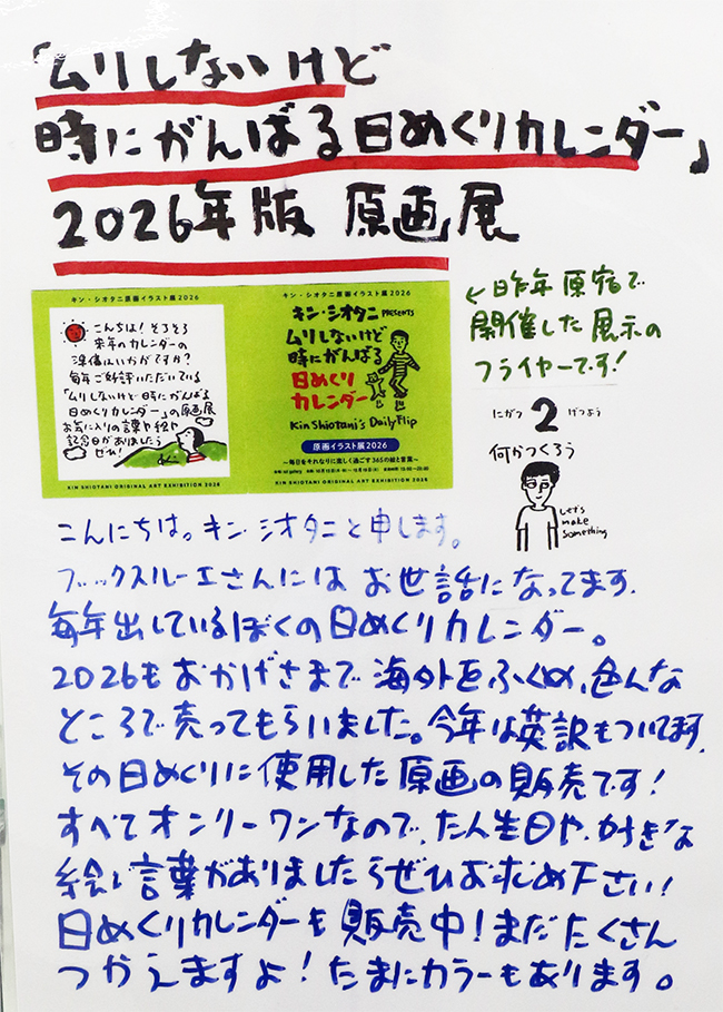 2026/2/6〜2/28 「ムリしないけど時にがんばる日めくりカレンダー」 キン・シオタニ原画展